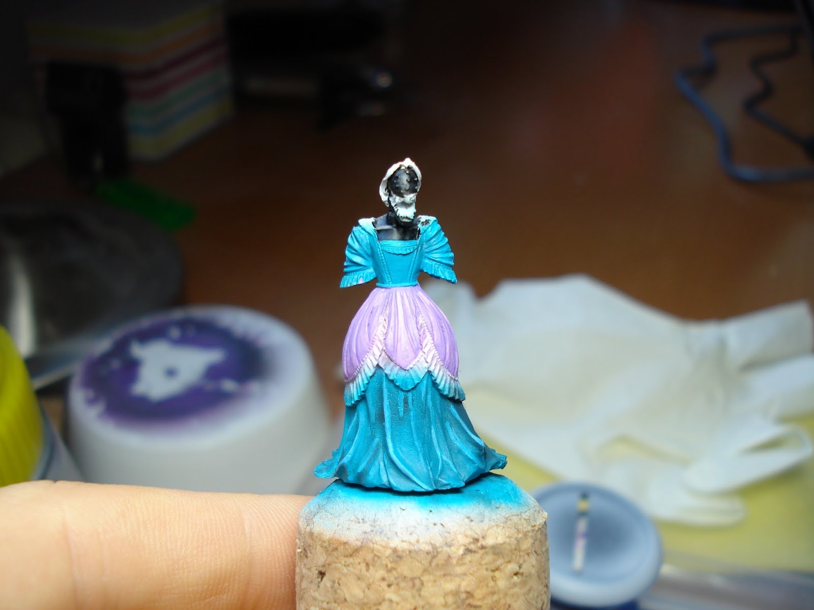 The small accents on the dress where painted with VMV Ivory and the whole mini was given an oil wash with a very light grey, to bring out the details without toning the model down too much.